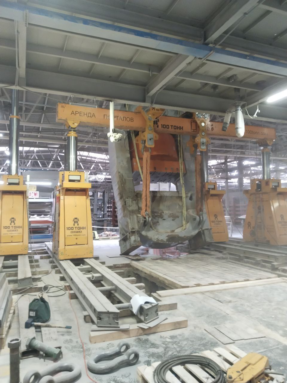 Команда «100 ТОНН» выполнила очередной проект на производстве керамогранита в Московской области. Бригада демонтировала старый пресс SACMI PH4800, провела его кантование и вывезла на улицу. Затем на место этого оборудования наши специалисты установили пресс SACMI PH5000XL, демонтированный в другой части цеха. Чтобы переместить эту единицу, ее также потребовалось перевести в горизонтальное положение, а затем вертикализировать в месте установки.