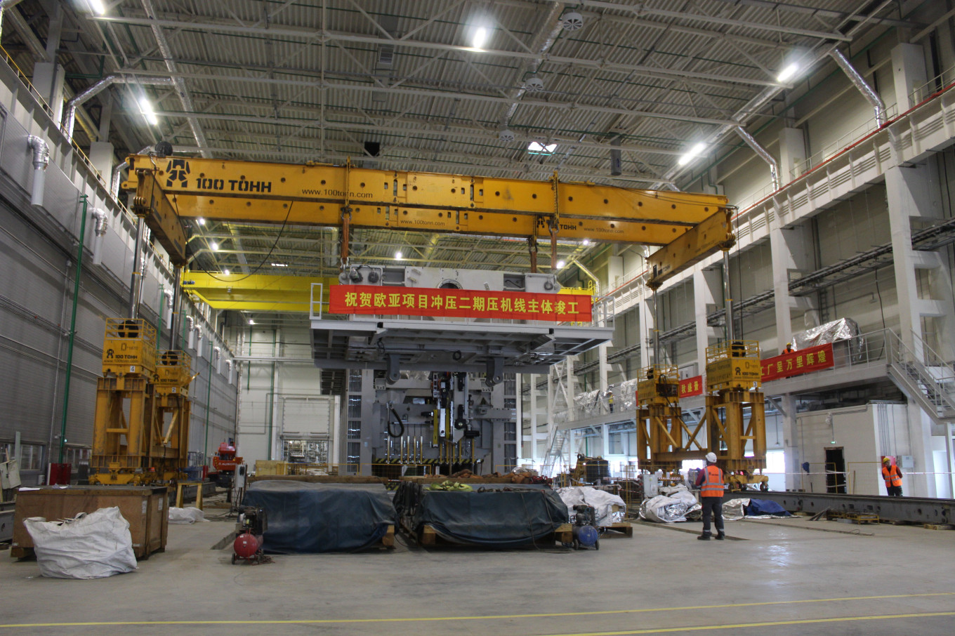 Автозавод закупил в Китае новую производственную линию из четырех прессов. Три из них были идентичны по параметрам: масса оснований и слайдеров составляла по 51 т, а корон — 114 т. Еще один отличался увеличенными габаритами: подвижная часть — 91 т, основание — 150 т, корона вместе с навесным оборудованием — 220 т.