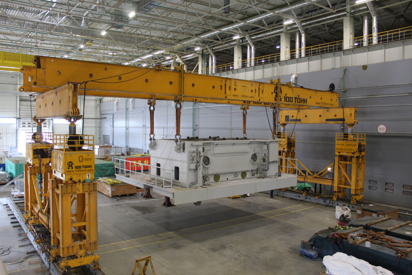 Для транспортировки использовались порталы (г/п 1100 и 500 т). Нижние части прессов команда опустила в приямок глубиной 7 м. Самой сложной операцией была установка короны большого пресса, ее нужно было поднять на высоту 7 м. Выполнить задачу грамотно и безопасно помог качественный инжиниринг и огромный опыт производственного персонала.