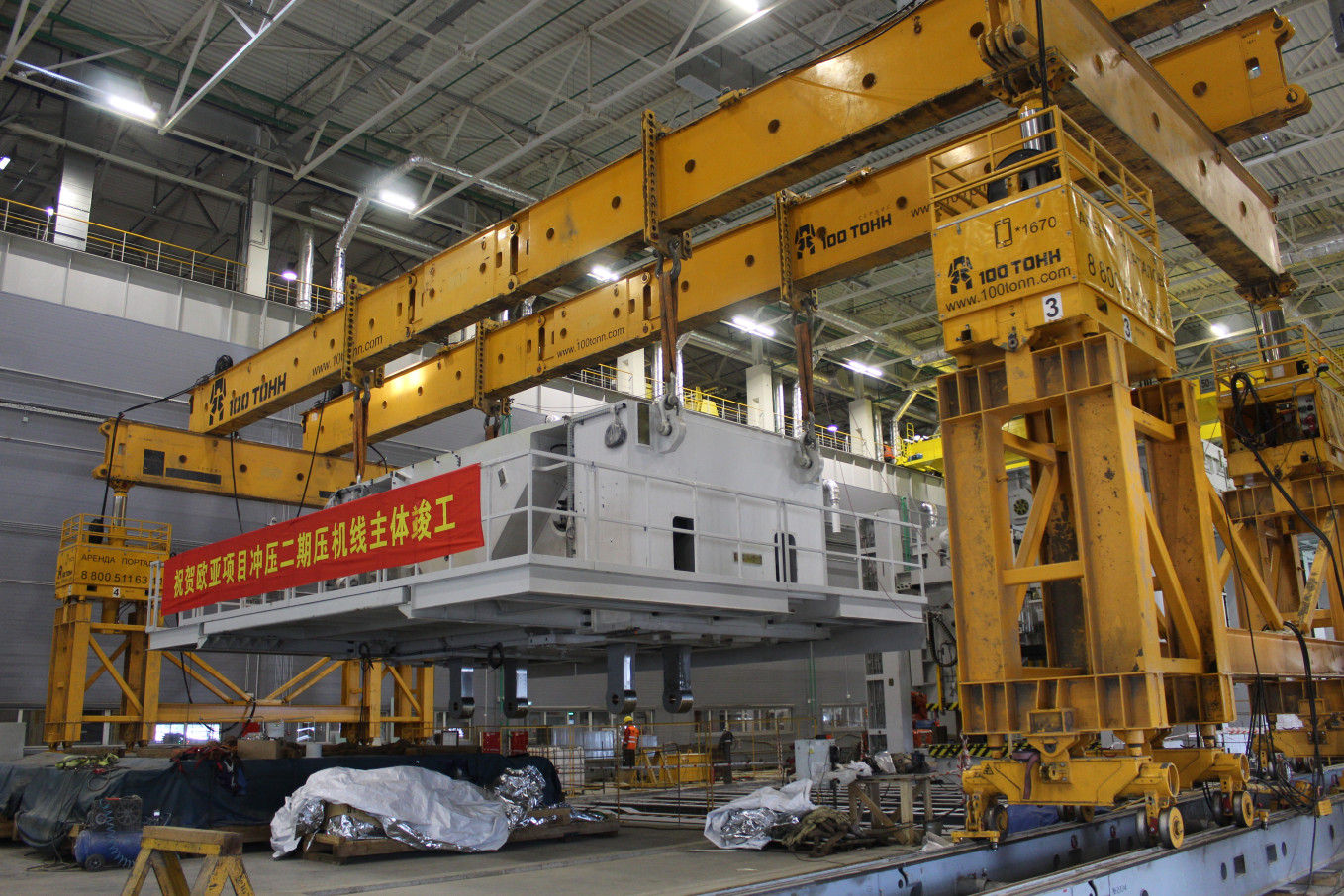На предприятии, принадлежащем китайской корпорации, наша команда смонтировала технологическую линию из четырех прессов: трех массой по 216 т и одного — массой 461 т. Проект реализован с учетом требований зарубежного производителя.