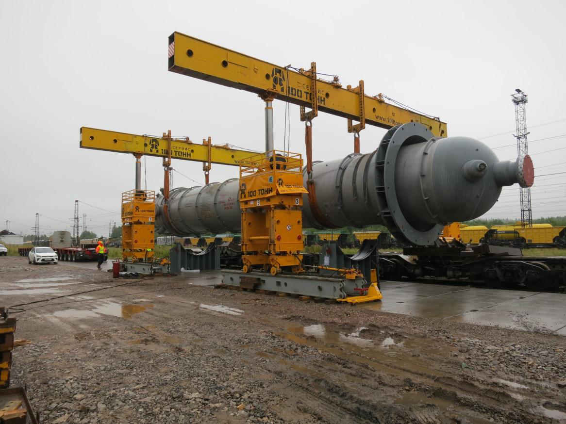 На объект сосуды обычно доставляются в горизонтальном положении. Как правило, здесь не требуется сварочный монтаж — оборудование поступает с высокой степенью заводской готовности. На производственной площадке выполняется кантование устройства в вертикальное положение. У колонн большой вес и длина, поэтому их такелаж — тонкая инженерная работа. Проводится расчет центра тяжести груза, выбирается оптимальная схема строповки, иногда с использованием специально разработанных траверс. Сам подъем требует синхронной работы нескольких кранов, порталов или системы с тросовыми домкратами.