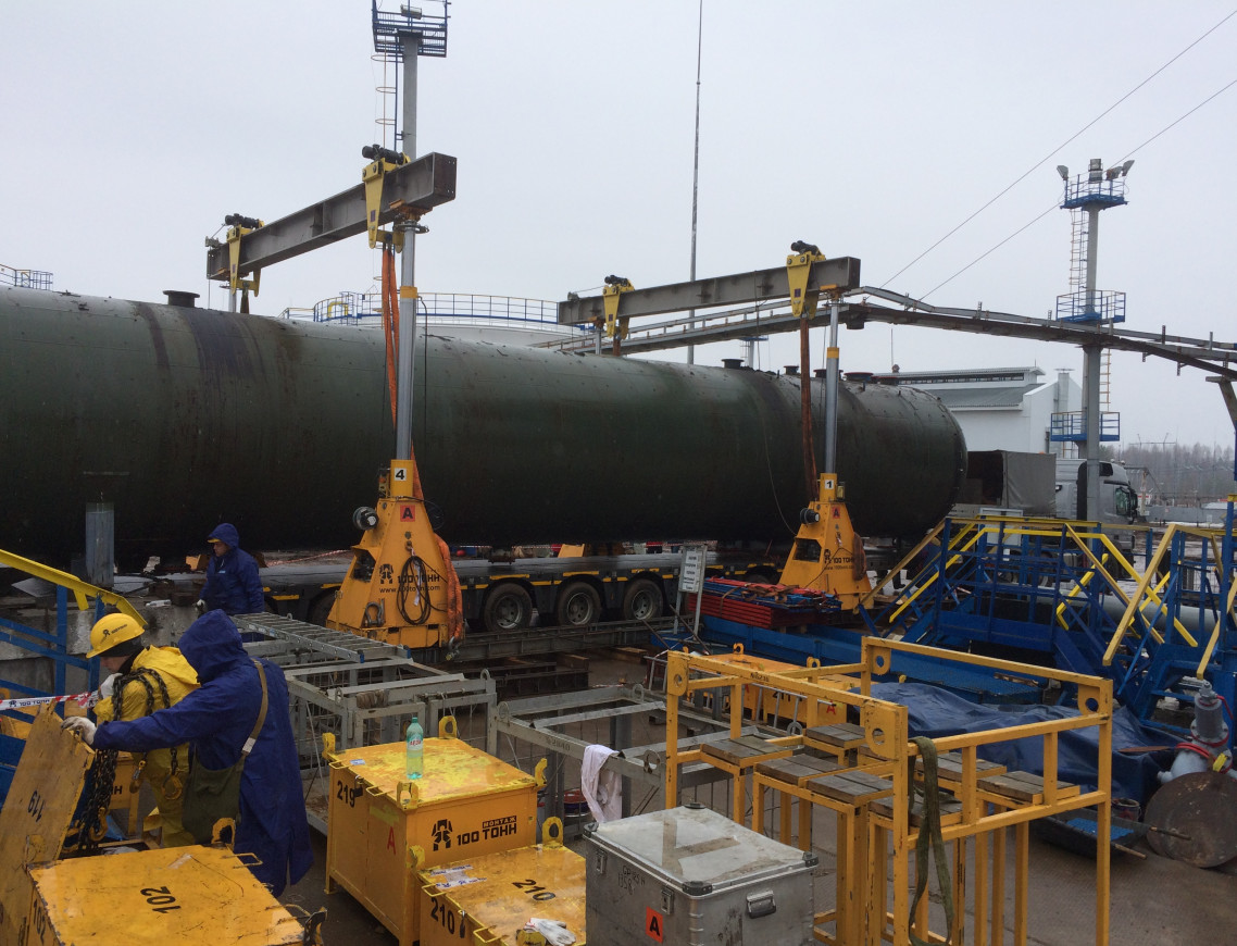 Под такелажем резервуаров подразумевают процессы их погрузки, выгрузки, подъема, перемещения. Также нередко промышленные емкости собирают непосредственно на площадке и для такого монтажа необходима такелажная поддержка. Сложность и нюансы работ предопределены массогабаритными характеристиками оборудования, параметрами площадки, доступностью грузоподъемных механизмов, необходимостью демонтажных работ на подготовительном этапе.