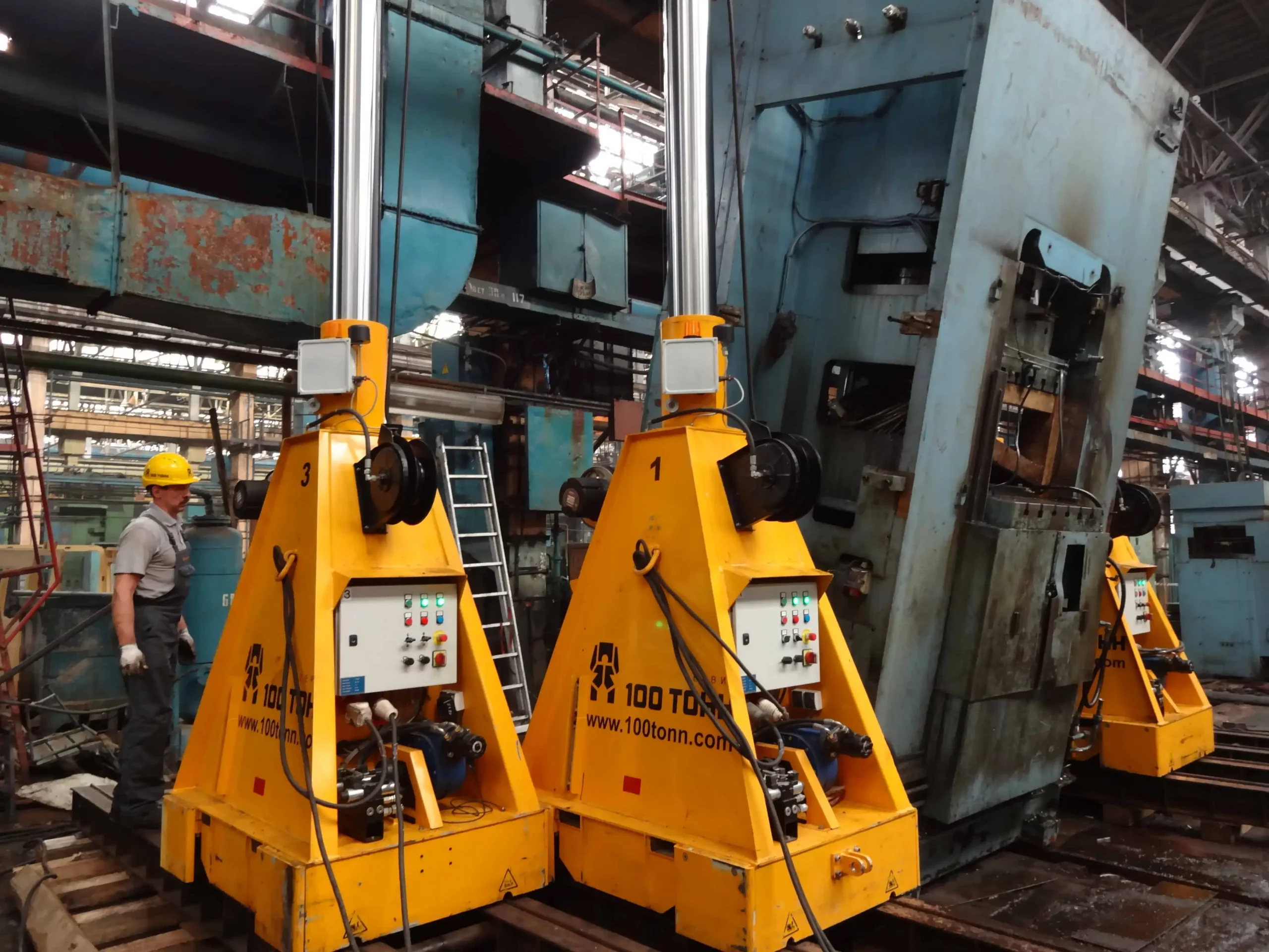 Для демонтажа, переноса оборудования и установки его на новое место компания «100 ТОНН» использует портальные гидравлические системы. У нас самый крупный парк гидравлических систем – уже более 10 единиц грузоподъемностью 8 – 1100 тонн. Они эффективны для перемещения тяжелых грузов, как на открытом пространстве, так и в стесненных условиях производственных помещений. Совместно с порталами используются автокраны, лебедки, системы сдвига, промышленные тележки, домкраты и другие инструменты. У нас более 4000 единиц самого различного монтажного оборудования.